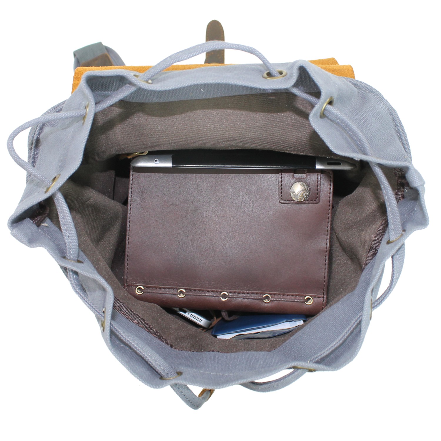 Tags: Sport Cowhide Leather Cotton Canvas Backpack C12. Blue Gray