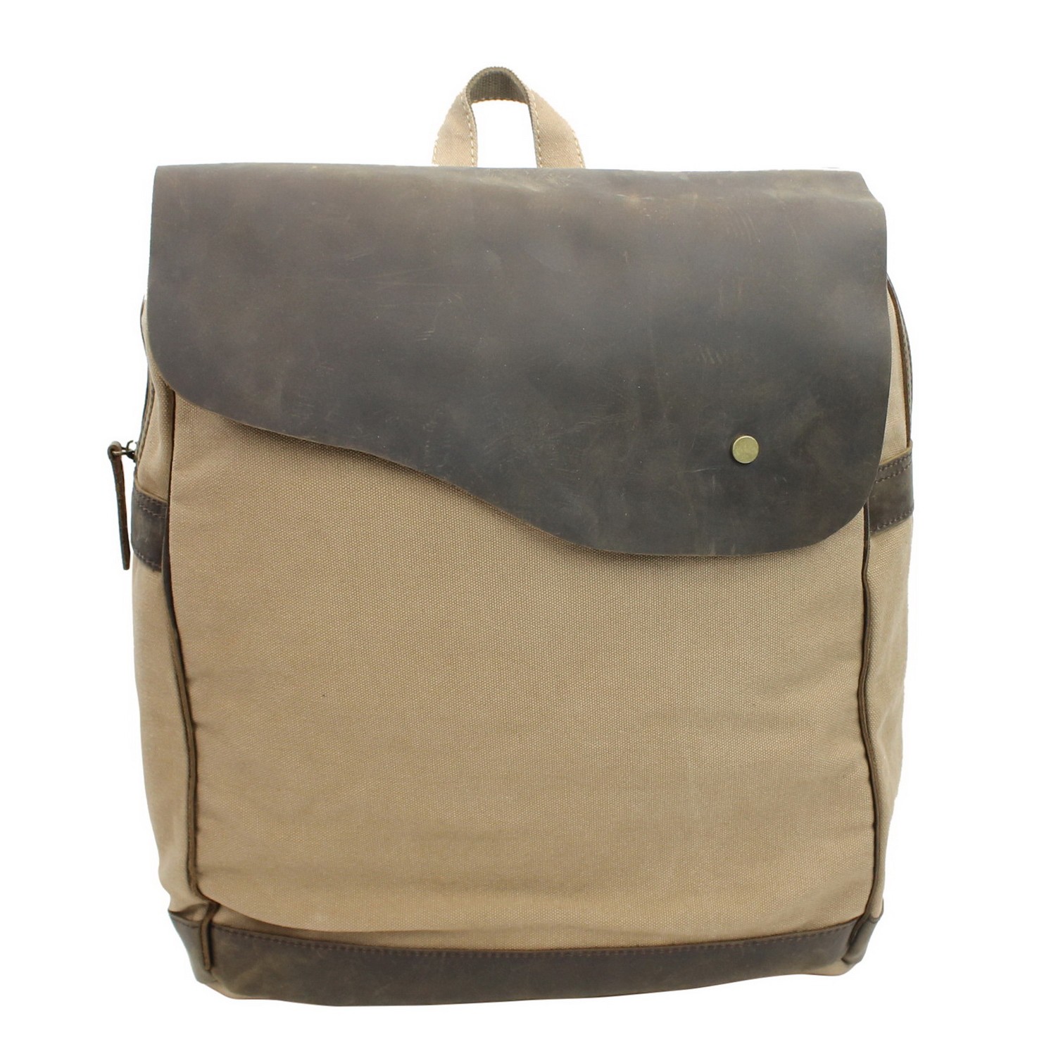 Sport Cowhide Leather Cotton Canvas Backpack C15.Khaki